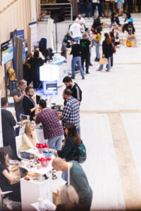 Sponsors are provided with a dedicated booth space, info-desks, and stools. Sponsors can choose to brand their space directly, bring their own pop-up booth or create a custom-built booth within the space provided.